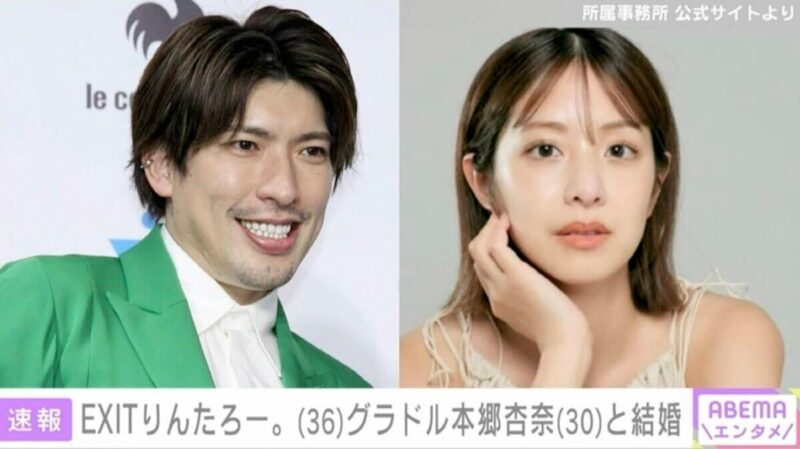本郷杏奈さんは2022年8月23日に、お笑いコンビ・EXITのりんたろー。さんと入籍しました。